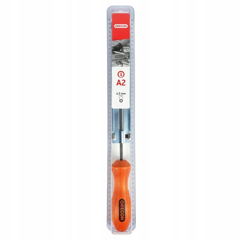 Pilník s vodítkom OREGON 4,5 mm - v blistri pomôže udržať správny uhol ostrenia. Brúsenie (ostrenie) reťaze je s ním veľmi jednoduché a zvládne ho každý.