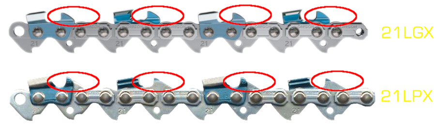 Toto je štvorcová reťaz s priemerom .325" rovnako ako reťaz 20-21-22 LPX. Rozdiel je v tom, že reťaz PowerCut® radu 20-21-22-LGX nemá obmedzujúci pätkový nárazník. Účelom obmedzujúceho nárazníka pätky je znížiť vibrácie a riziko spätného rázu, preto reťaze LGX odporúčame skúseným používateľom. Výhodou týchto reťazí je agresivita rezu. Reťaze LGX 20-21-22 sú navrhnuté tak, aby do rezu prenášali silu dnešných vysokovýkonných píl.