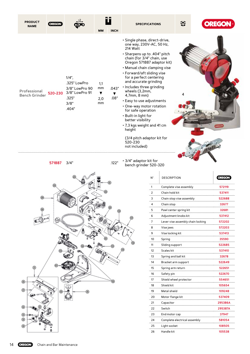 Brúska/ostrička Oregon vhodná na ostrenie všetkých typov pílových reťazí vhodná pre elektrické, reťazové a akumulátorové píly.
