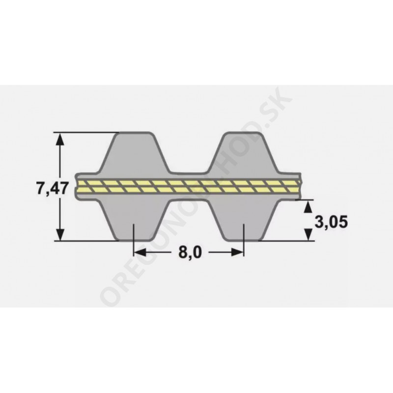 Rozmery v mm - 1800DS8M25 (dĺžka 180 cm, šírka 2,5 cm), 225 zubov.