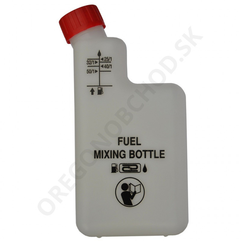 Fľaša určená na jednoduché odmeranie a zmiešanie paliva s 2-taktným olejom.