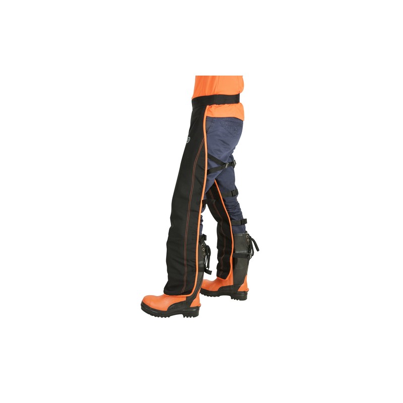Protiporezové návleky univerzálnej veľkosti s prednou ochranou typu A (trieda 1), ktoré sa nosia cez bežné nohavice.