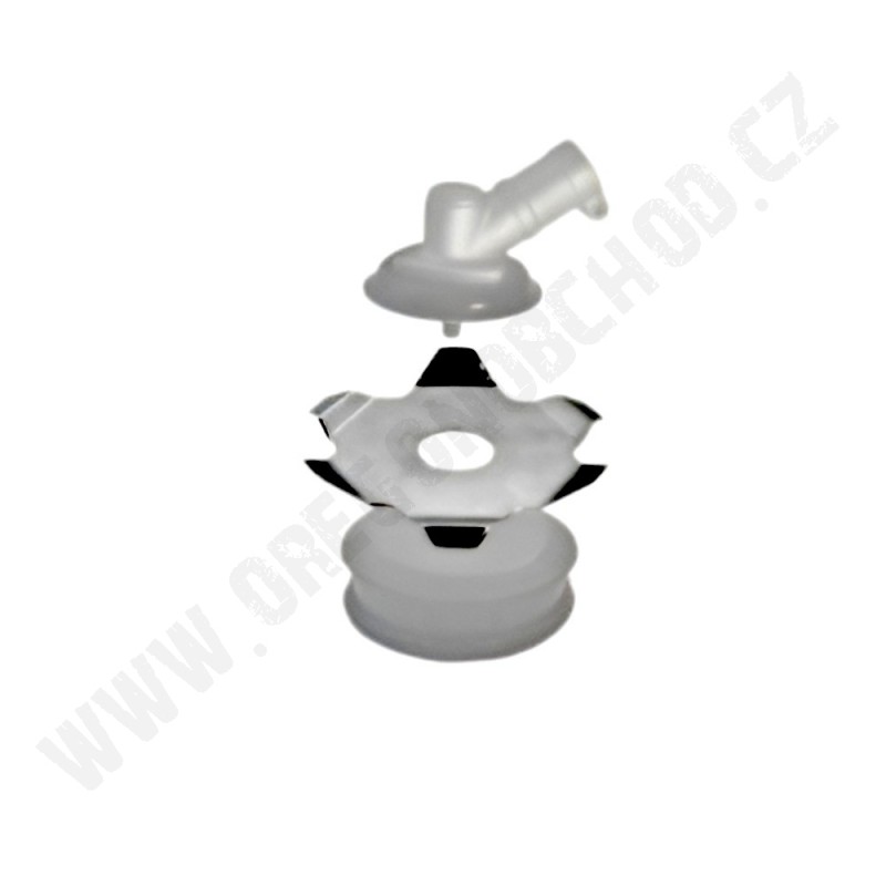 Tento kryt (nôž) spoľahlivo zabraňuje zachytávaniu trávy a buriny na hlave prevodovky krovinorezu.