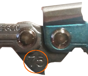Ako určiť dĺžku reťaze:Vypočítajte počet vodiacich článkov reťaze, ktorú ste doteraz používali na svojej píle, pozri obrázok. Prípadne vyhľadajte počet vodiacich článkov medzi informáciami na vašej lište. Za počtom vodiacich článkov zvyčajne nasledujú písmená "DL" (od Drive Links).