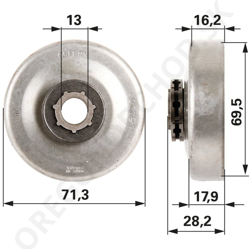 -Kompletná reťaz sa skladá zo spojkového bubna a vymeniteľného vodiaceho krúžku.