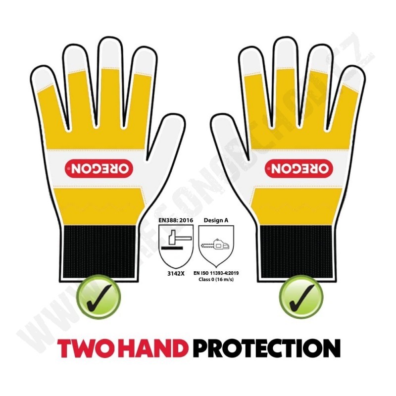 Tieto rukavice Oregon poskytujú dokonalú ochranu oboch rúk (pravej aj ľavej) pred porezaním pri práci s motorovou pílou. Sú vyrobené z hladkej kože a vďaka ich výraznej žltej farbe ich ľahko nájdete, ak ich necháte ležať na zemi v lese alebo v tráve.