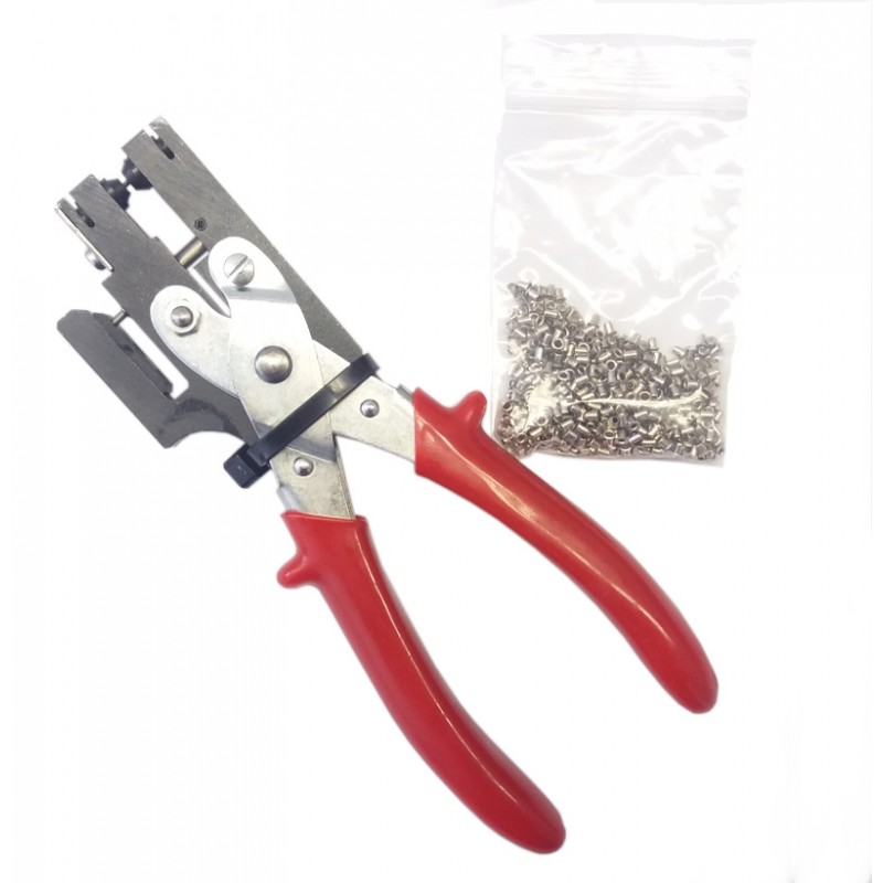 Nitovacie kliešte Spencer na nitovanie oceľových meracích pásiem.