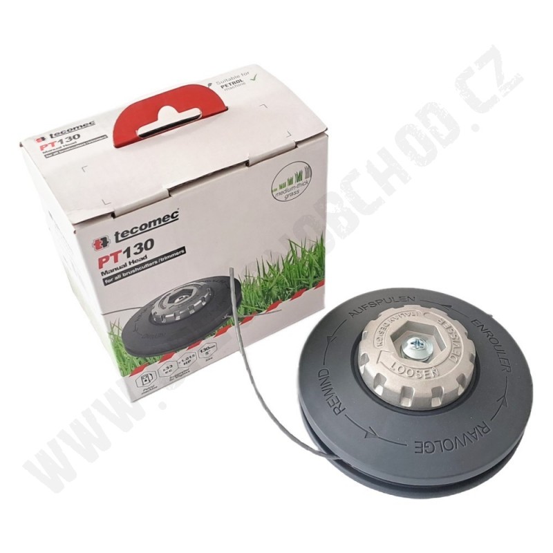 Ručná strunová vyžínacia hlava TECOMEC PT130. Hlava je vhodná pre takmer všetky typy krovinorezov dostupných na trhu s objemom do 33 cm3.