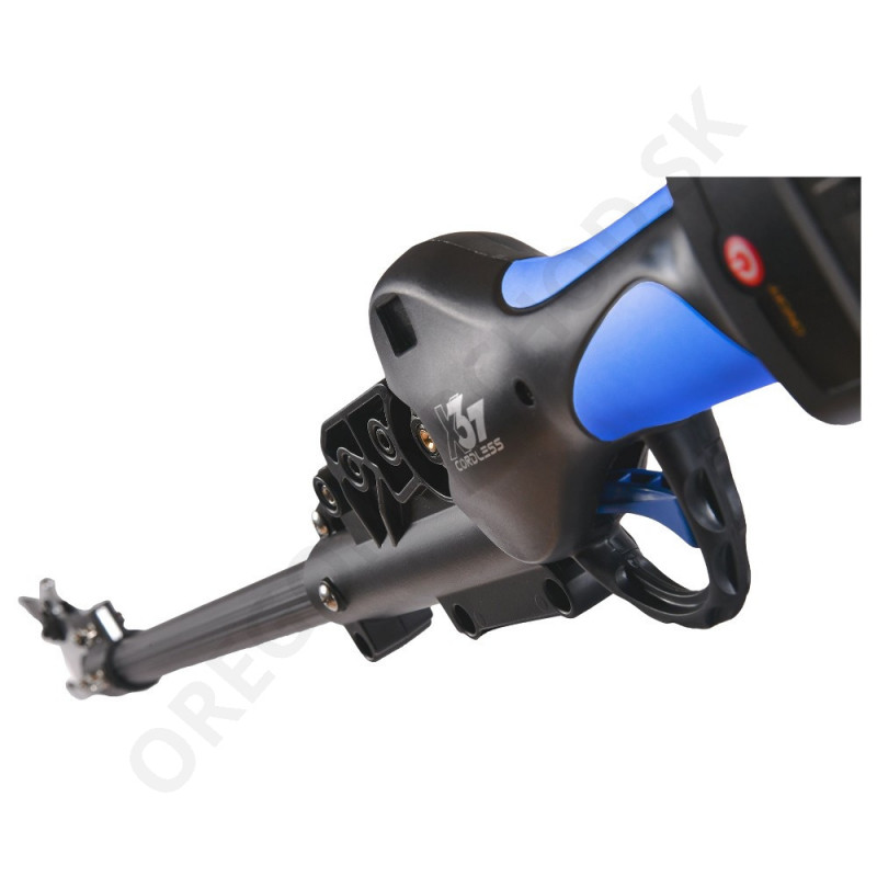 - je prvým náradím svojho druhu na trhu, ktoré má motor a batériu umiestnené v spodnej časti lišty. To znamená, že na hlave náradia je umiestnená iba strihacia hlava
