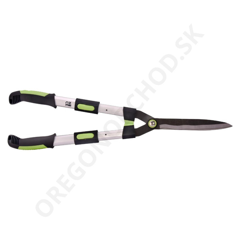- Nožnice na živý plot s vlnitým ostrím a teleskopickými rukoväťami (nastaviteľná dĺžka od 69 do 84 cm)