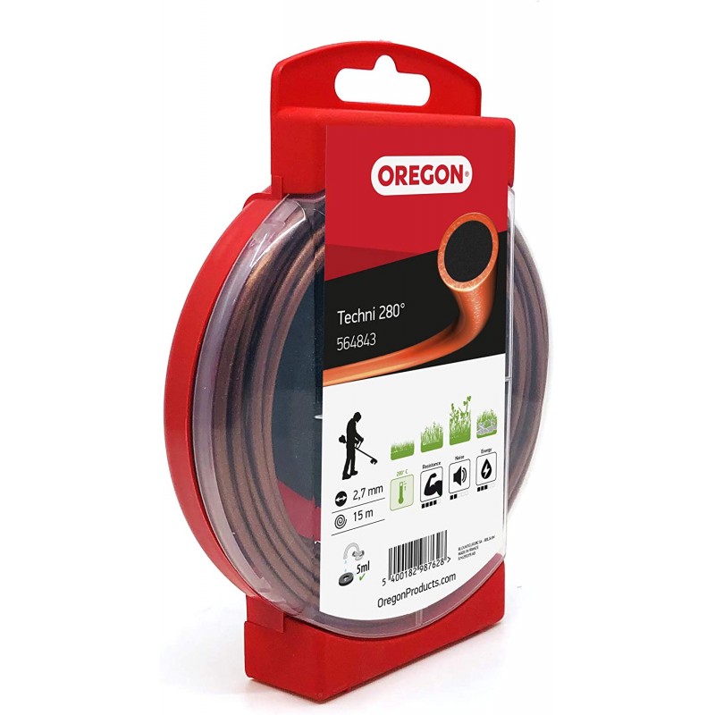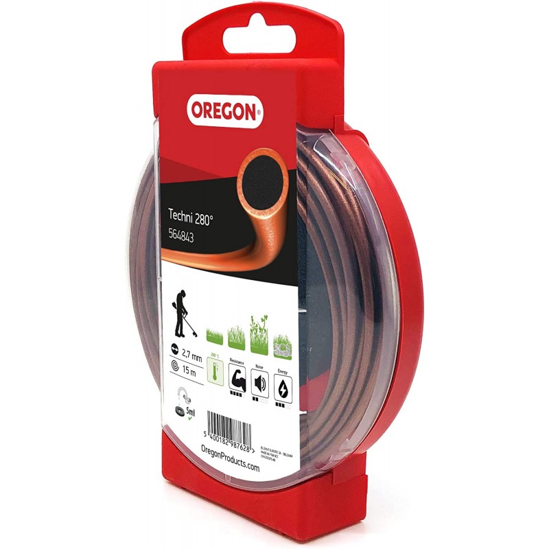 Žacia struna Oregon Techni 280° možno použiť na pravidelné kosenie nízkej a vysokej trávy. Vydrží o 30 % dlhšie ako konkurenčné okrúhle struny. Je vhodná pre väčšinu krovinorezov/vyžínačov dostupných na trhu Husqvarna, Stihl, Oleo-Mac, Alko atď.