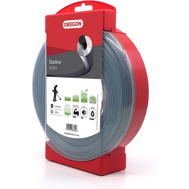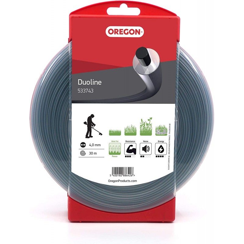 Zloženie struny Oregon Duoline - 30 % odolného, pevného uhlíkového jadra a 70 % pružnejšieho vonkajšieho plášťa - umožňuje ľahšiu absorpciu nárazov a znižuje riziko zachytenia struny v očku zacej hlavy