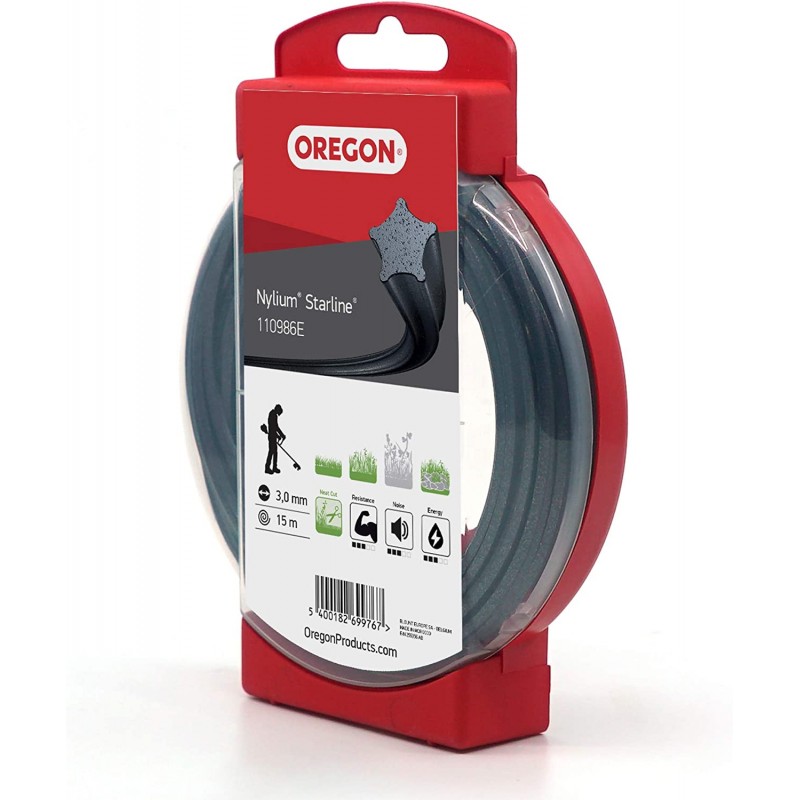 Profesionálna žacia struna / žacie lanko Oregon NYLIUM STAR je vhodná na kosenie nízkej trávy, vysokej trávy, buriny a rastlín s tuhými stonkami alebo na kosenie vo vlhkých oblastiach, kde je rast trávy intenzívnejší a stonky sú silnejšie.