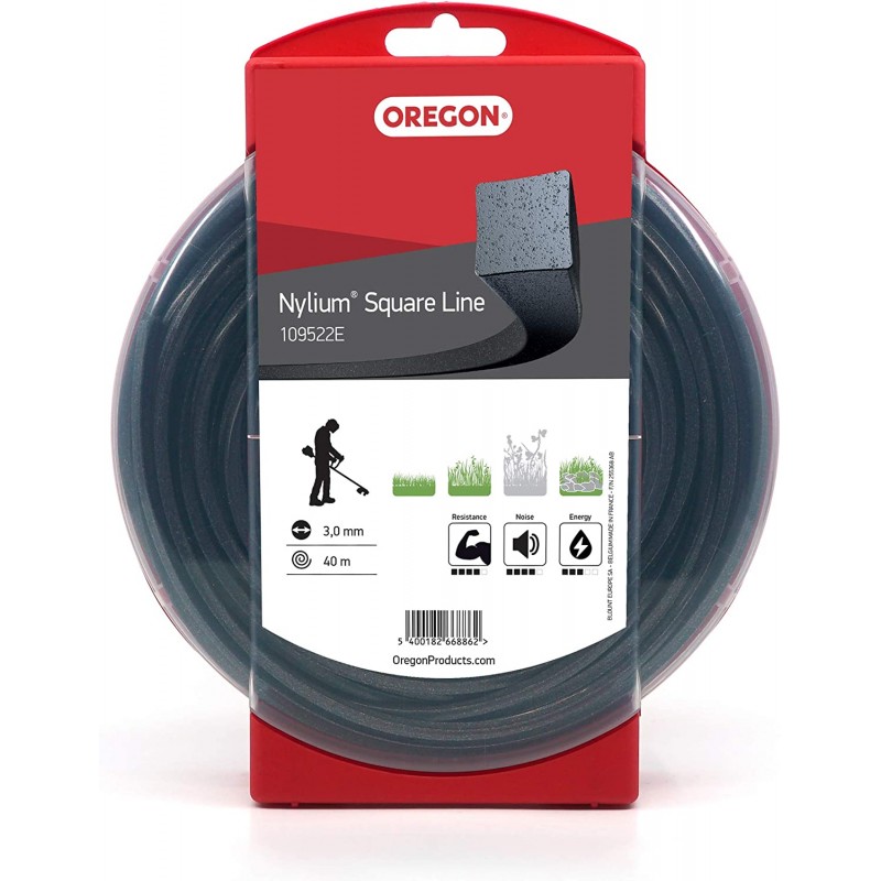 Žacia struna Oregon Nylium je určená na profesionálne a domáce kosenie záhrad, parkov a pozemkov s nízkou trávou a vysokou trávou s hustými steblami. Struna obsahuje hliníkové častice, vďaka čomu je odolná proti zlomeniu v priechodke a zabraňuje taveniu struny (spekaniu). Struna kosí pomerne agresívne s hladkým rezom, ale nie je veľmi vhodná pre "mladé" trávniky so slabými koreňmi.