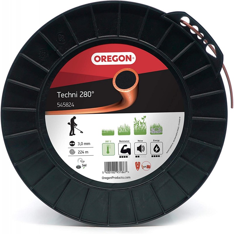Žaciu strunu Oregon Techni 280° je možné použiť na pravidelné kosenie nízkej a vysokej trávy. Vydrží o 30 % dlhšie ako konkurenčné okrúhle struny. Je vhodná pre väčšinu krovinorezov/vyžínačov dostupných na trhu Husqvarna, Stihl, Oleo-Mac, Alko atď.